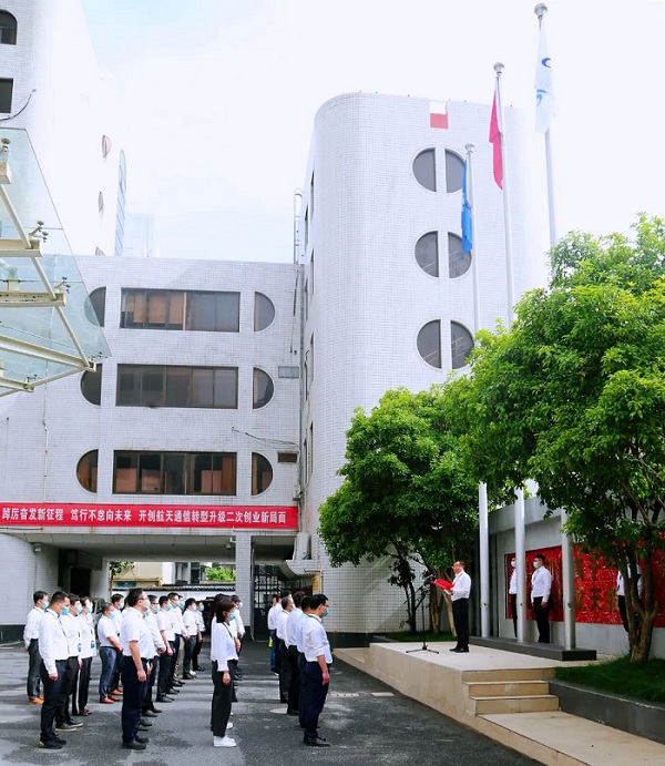 航天通信全級次舉行升旗儀式慶祝第七個“中國航天日”